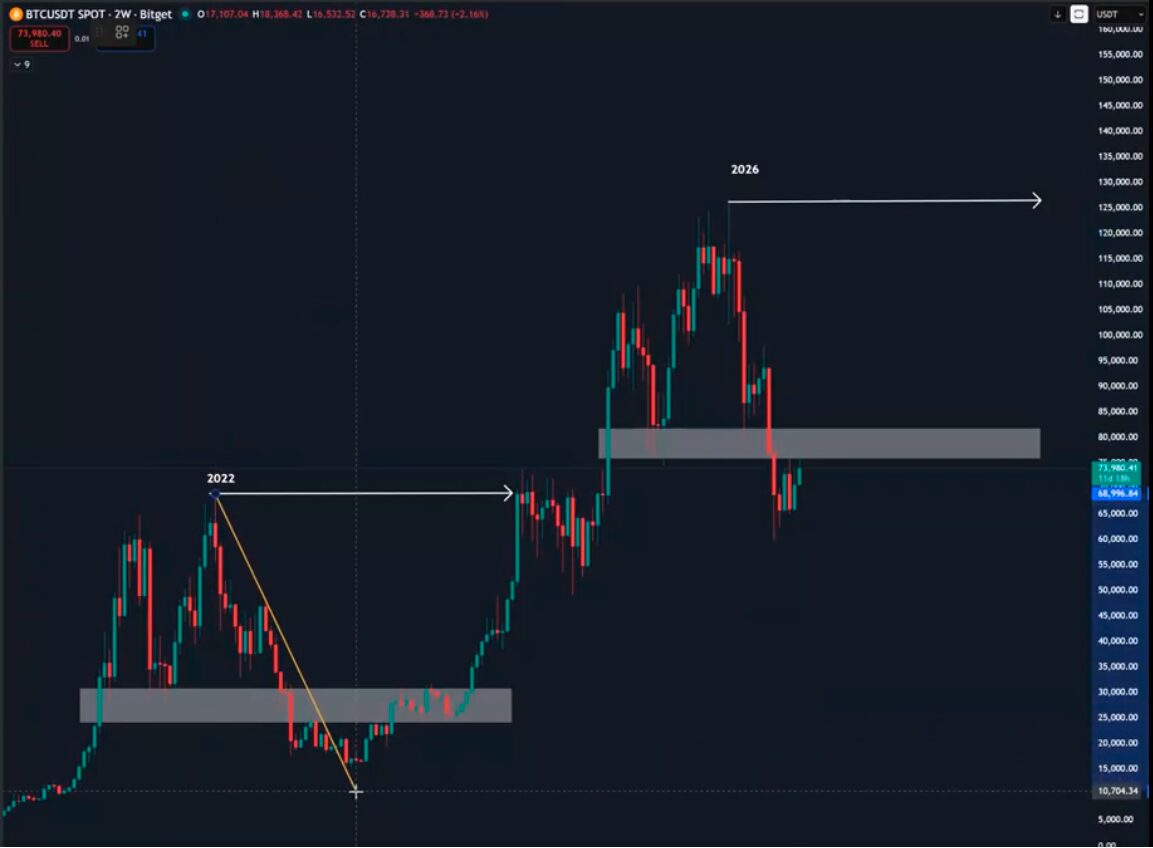 Szerinte a jelenlegi piaci helyzet több szempontból hasonlít a korábbi medvepiacokhoz. Külön kiemelte a 2022-es időszakot, amikor a Bitcoin árfolyama hirtelen nagyot esett, majd egy újabb, még erősebb zuhanás következett.