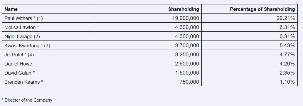 A londoni tőzsdén jegyzett Stack BTC tőkebevonásához kapcsolódó nyilvános adatokból kiderült, hogy Kwarteng cégébe Farage saját médiacége, a Thorn In The Side Ltd. révén fektetett be 215 ezer fontot, közel 100 millió forintot. A vásárlás körülbelül 6,3%-os tulajdonrészt biztosít a Reform UK vezetőjének, ami nagyobb így mint Kwarteng 5,4%-os tulajdonrésze.