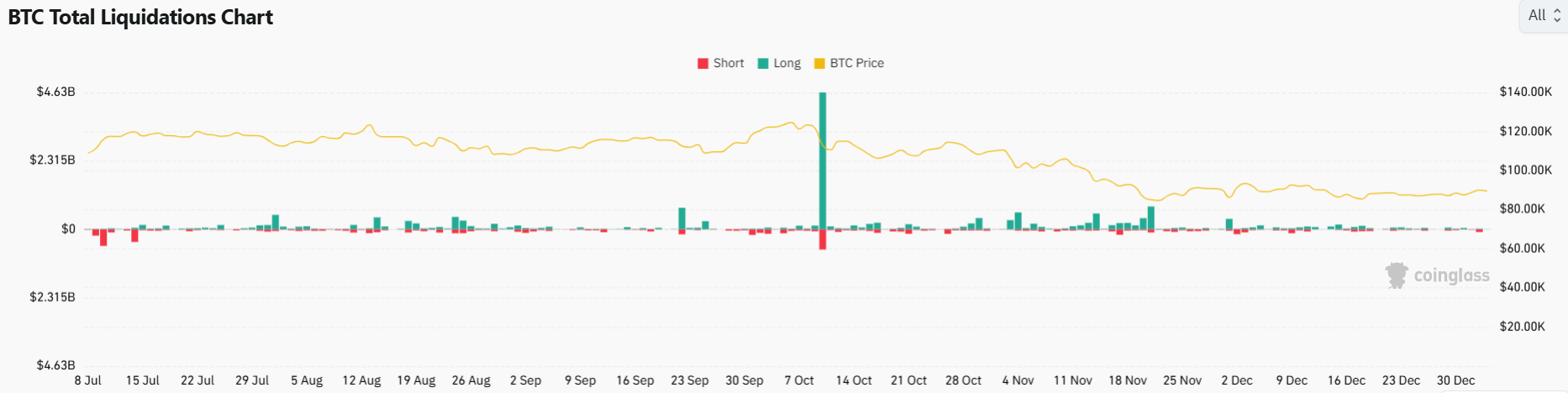 Ez az egyensúlyhiány inkább a sikertelen medvepiaci pozícionálás bizonyítékának tekinthető, mintsem a pánik által vezérelt long pozíciók lezárásának. Összességében a Bitcoin jelenlegi szerkezete inkább a kontrollált konszolidációt tükrözi, mint a gyengeséget.