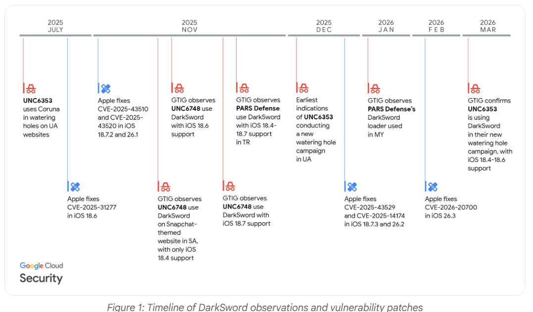 A DarkSword névre keresztelt exploit összesen hat sebezhetőséget használ ki, hogy rosszindulatú programot telepítsen azokra az eszközökre, amelyek az iOS 18.4 és 18.7 közötti verzióit futtatják. Amint egy felhasználó egy rosszindulatú vagy kompromittált weboldalra látogat egy sebezhető készülékkel, az exploit segítségével malware kerül a telefonra, köztük egy Ghostblade nevű, JavaScript-alapú adatlopó, amely aktívan keresi a nagy kriptotőzsdék alkalmazásait, például a Coinbase, Binance, Kraken, Kucoin, OKX és MEXC appokat.