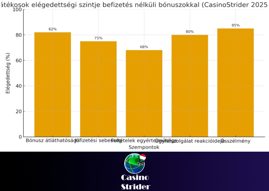 Megjegyzés: Az összélmény 85%-os értéke azt mutatja, hogy a játékosok többsége pozitívan értékeli a befizetés nélküli ajánlatokat, ugyanakkor a “Feltételek egyértelműsége” (68%) továbbra is fejlesztendő terület.