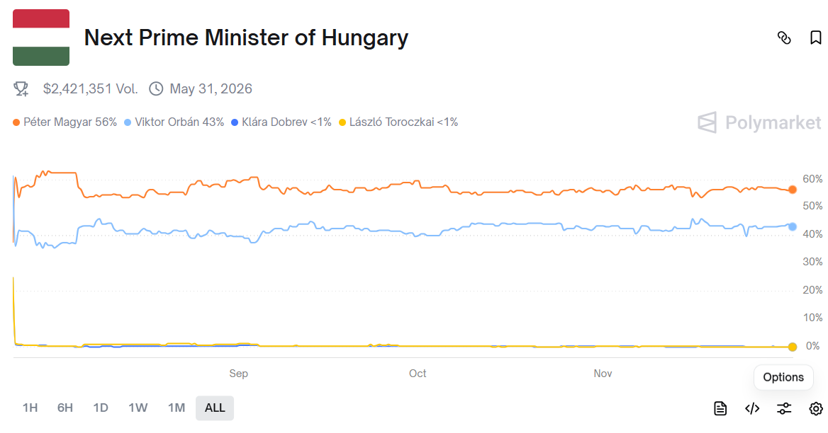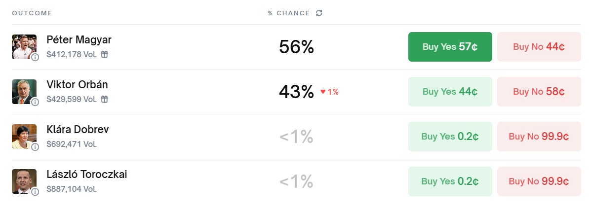 A Polymarket megmondja, hogy ki lesz Magyarország miniszterelnöke a következő évben
