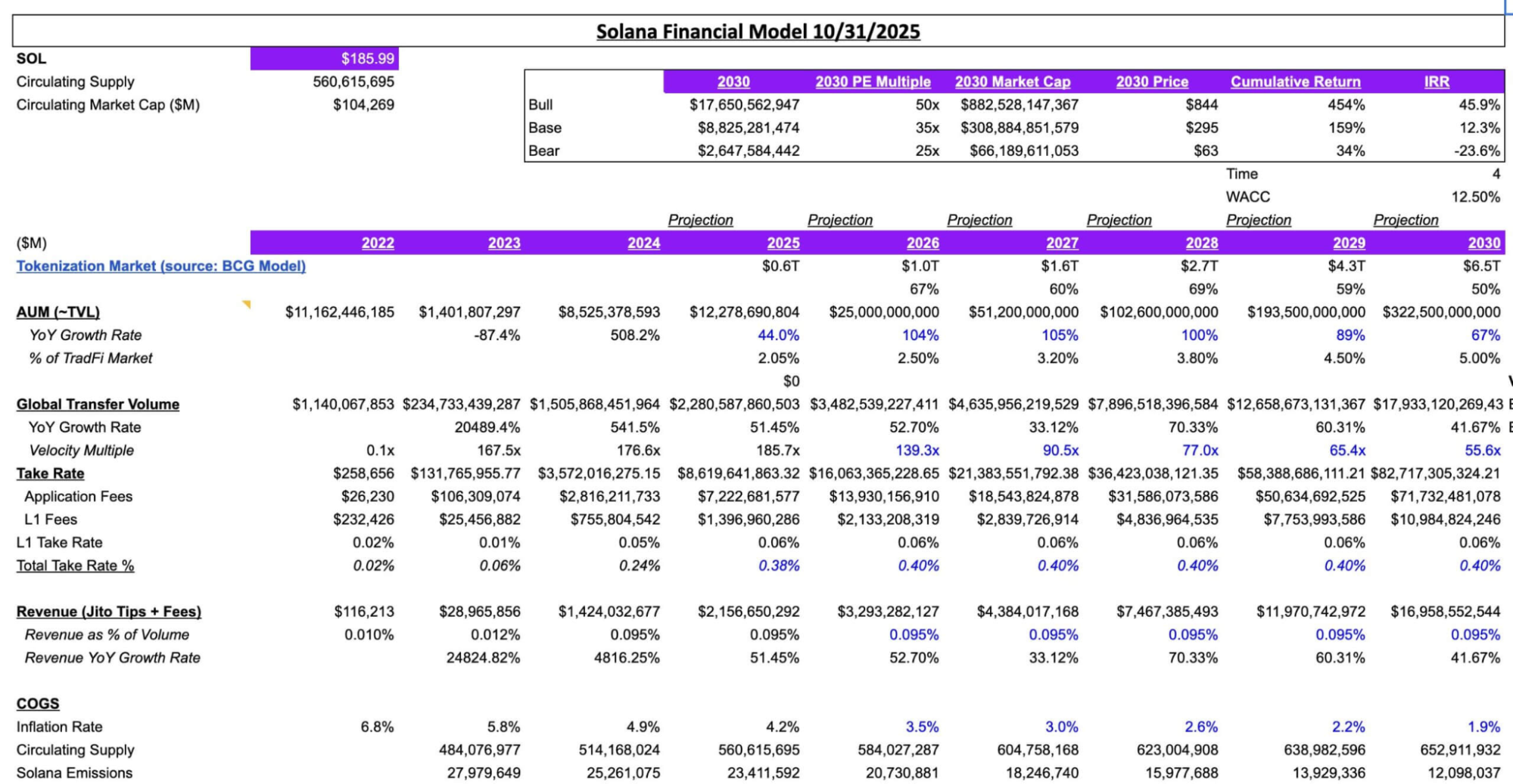 Jon Ma, az Artemis elemzőcég vezérigazgatója nemrég egy új értékelési modellt mutatott be, amely azt vizsgálja, milyen értéket képviselhet egy blokklánc, ha a hagyományos eszközök valóban átkerülnek a digitális térbe. Ma szerint a jövőben a hálózatok értékelése inkább infrastruktúraként történik majd, nem spekulatív részvényként. Az érték fő mozgatói a tranzakciós sebesség, a költséghatékonyság, a díjbevétel és a nagy volumenű pénzáramlások támogatása lesznek.