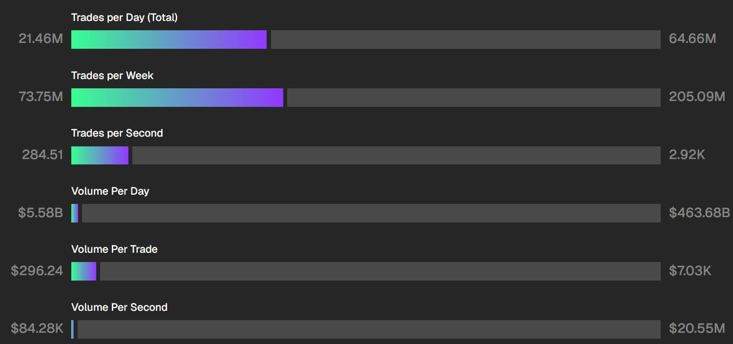 A Solana jelenleg több mint 3000 tranzakciót képes feldolgozni másodpercenként, átlagosan fél centes díj mellett. Az Ethereum ezzel szemben 15–30 tranzakcióra képes a fő hálózaton, és a díjak gyakran több dollárra rúgnak. Ez a különbség felkeltette a pénzügyi elemzők figyelmét, akik a blokkláncok és a hagyományos tőkepiacok közötti kapcsolódási pontokat vizsgálják.