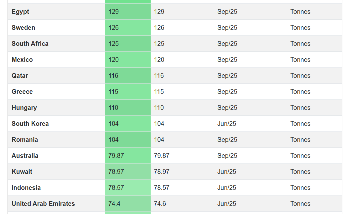 Amint a Trading Economics Gold Reserves kimutatása is mutatja, a Tether ezzel az aranymennyiséggel olyan államok közé került mint Mexikó, Katar, Görögország és Magyarország. Sőt hazánkat már le is hagyta, hiszen Magyarországnak jelenleg körülbelül 110 tonna aranytartaléka van. Viszont mindenképp érdekes, hogy már olyan gazdaságilag fejlett országokat is már beelőzött mint Ausztrália, Kuwait vagy az Egyesült Arab Emirátusok.