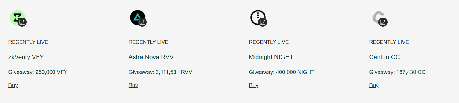 A hivatalos oldalon folyamatosan lehet új projekteket böngészni, amelyek extra akciókkal csábítják a befektetőket. A cikk írásakor listázott lehetőségek között az egyik a zkVerify VFY tokenje.