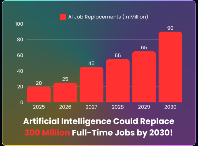 A Goldman Sachs által közzétett jelentés szerint a mesterséges intelligencia 2026-ban 25 millió, 2030-ban pedig akár 270 millió teljes munkaidős állást is helyettesíthet. Forrás: BoterView