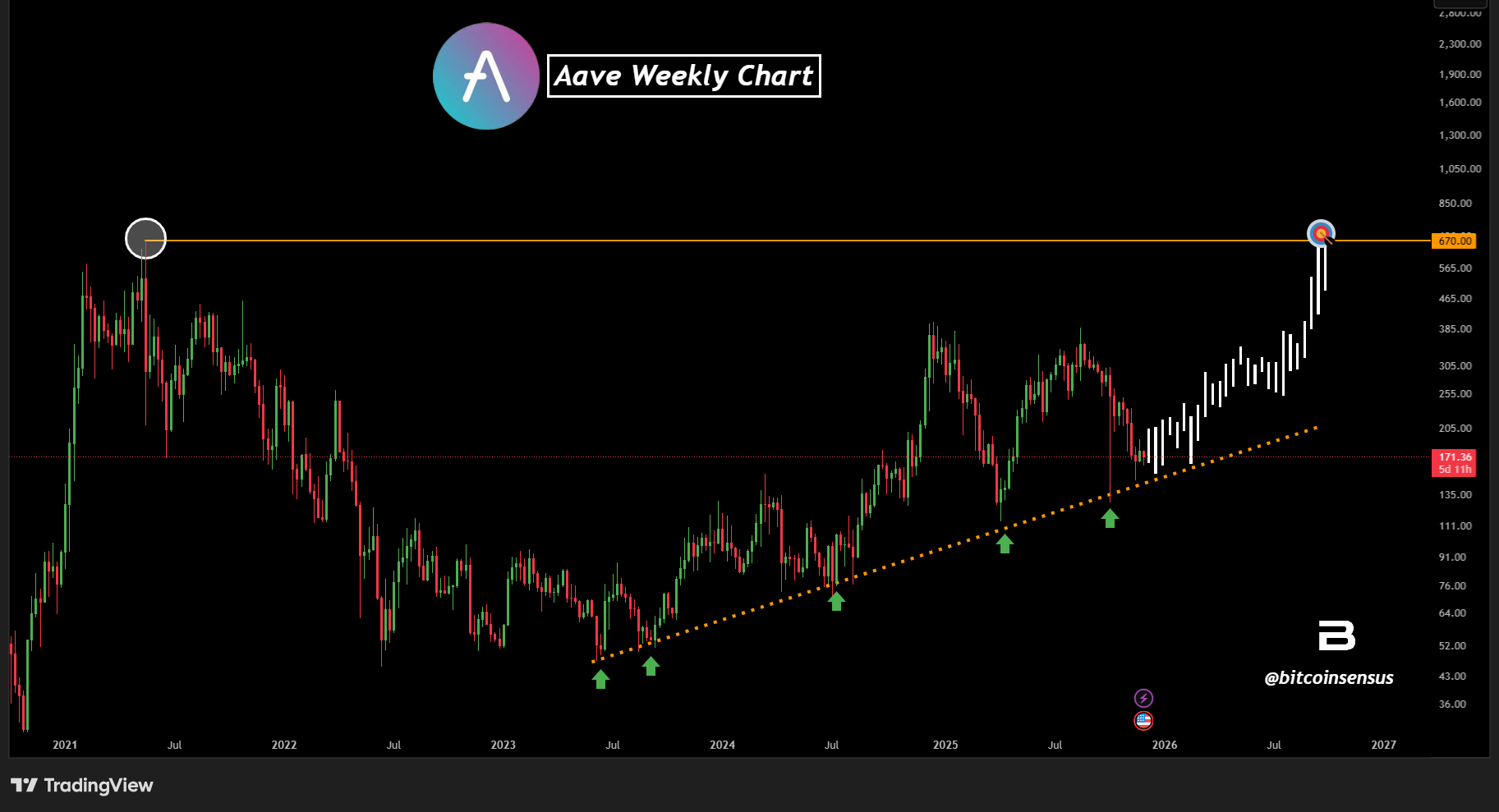 Az Aave natív tokenje, az $AAVE, az elmúlt 24 órában közel 15%-ot erősödött, árfolyama pedig megközelítette ismét a 200 dolláros szintet. Bár az elmúlt egy évben továbbra is veszteséges – különösen október óta – a DeFi-eszköz jócskán felülteljesítette több kriptovaluta-index, mint például a CoinDesk 20 emelkedését. A mozgást egy határozott technikai kitörés indította: az ár átlépte a 175 dolláros ellenállást, miközben az órás forgalom egyszerre közel háromszorosa lett az átlagnak, ami klasszikus „volume confirmation” egy trendfordulóban.