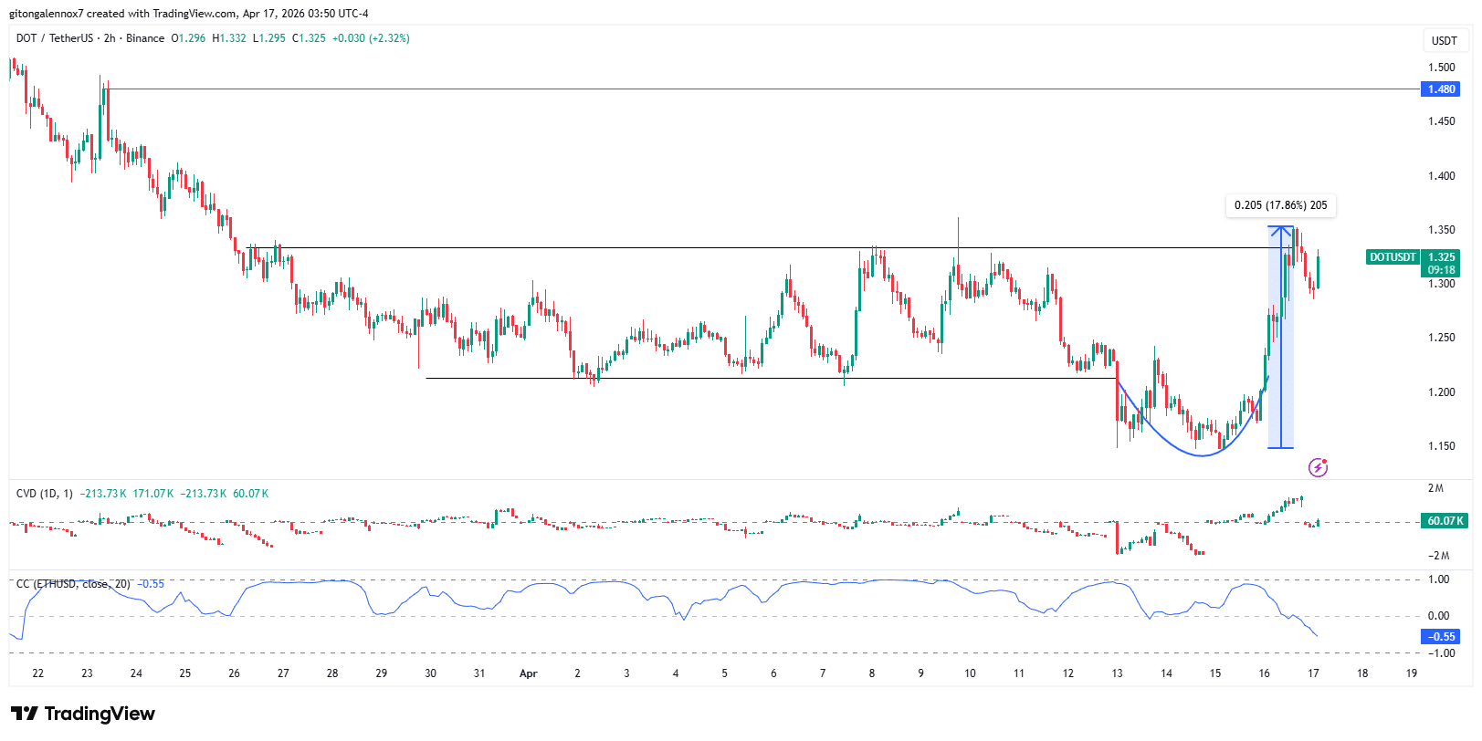 Most, a mélypontot követően (1,15 dollár) a DOT-nak sikerült egy 18%-os gyertyát produkálnia, és visszatért egy fontos szint fölé (1,32 dollár). Ahhoz azonban, hogy újra az eszközben rejlő potenciáliról beszélhessünk, még van hova fejlődni, mivel a DOT egykoron 50 dollár feletti történelmi csúcson állt.