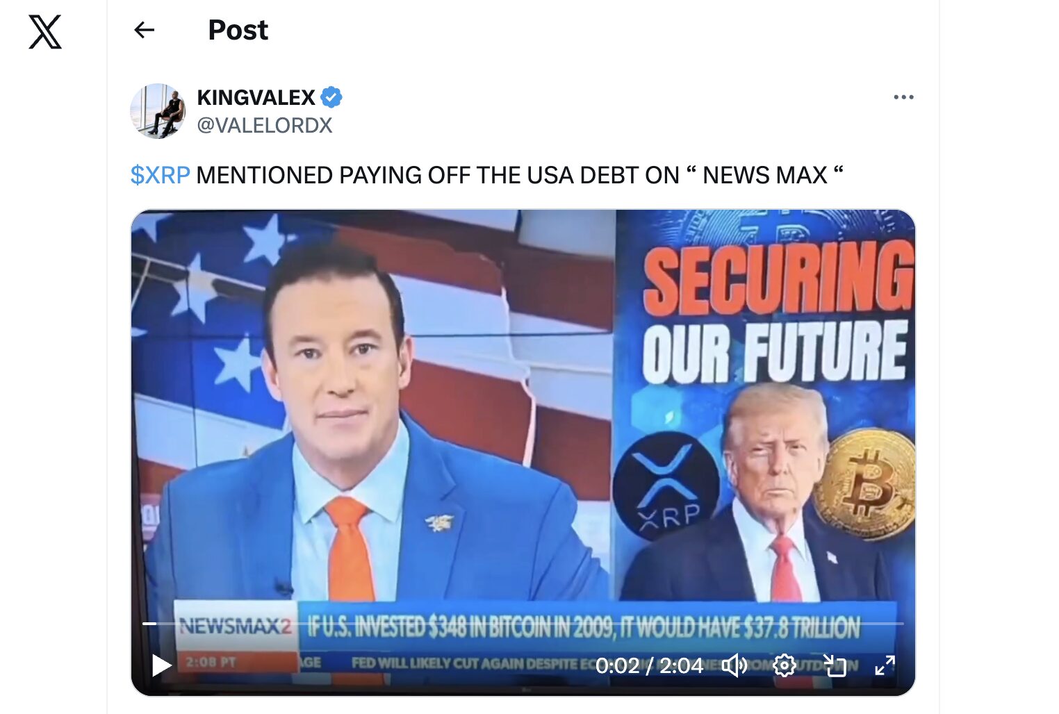 Carl Higbie, a Newsmax műsorvezetője nemrég élő adásban beszélt arról, hogy a digitális eszközök, például az XRP, miként segíthetik az Egyesült Államok kormányát a 37,8 billió dolláros államadósság kezelésében.
