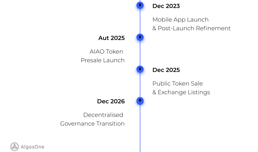 Az AiAO natív token birtokosai szavazati jogot és osztalékot kaphatnak a tokenjeik után. Az előértékesítés szakaszai 2025 elején indultak, szakaszonként akár 8 hetes intervallummal, és 0,01 dolláros induló árral. Csak AlgosOne regisztrált felhasználók vehetnek részt az előértékesítésben. Aki tehát be akar most szállni, neki regisztrálnia kell az AlgosOne hivatalos oldalán, majd fel kell töltenie az egyenlegét. Ebből aztán a Buy Tokens funkció segítségével vásárolhatóak is tokenek. De persze nem lehet ezt bármikor megtenni, minden szakaszban limitált mennyiségű token érhető el. Most a 9. szakaszban kevesebb mint négy óra alatt 75 millió tokent adtak el. Ebben az időszakban az ár körülbelül 2,30 dollárról nagyjából 3,48 dollárra emelkedett, ami hozzávetőleg 51%-os növekedést jelent.