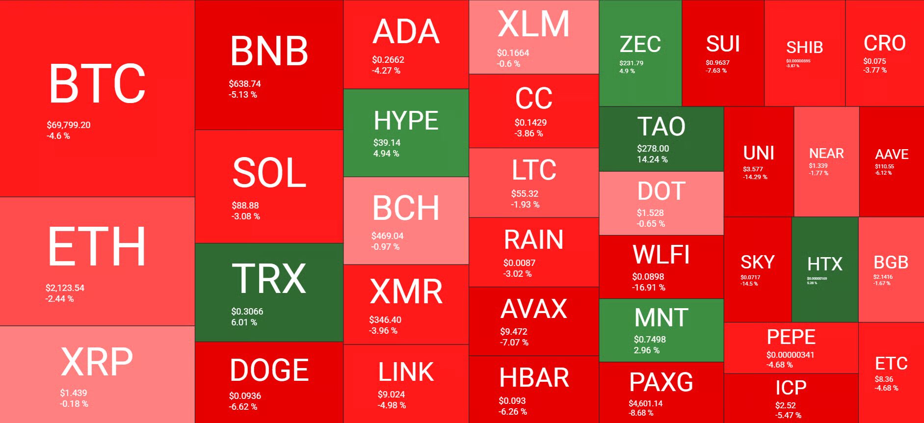 Az árfolyam ennek hatására csütörtökön egészen 68 800 dollárig esett, majd innen próbált visszakapaszkodni. Jelenleg a Bitcoin azért küzd, hogy 70 ezer dollár felett maradjon.