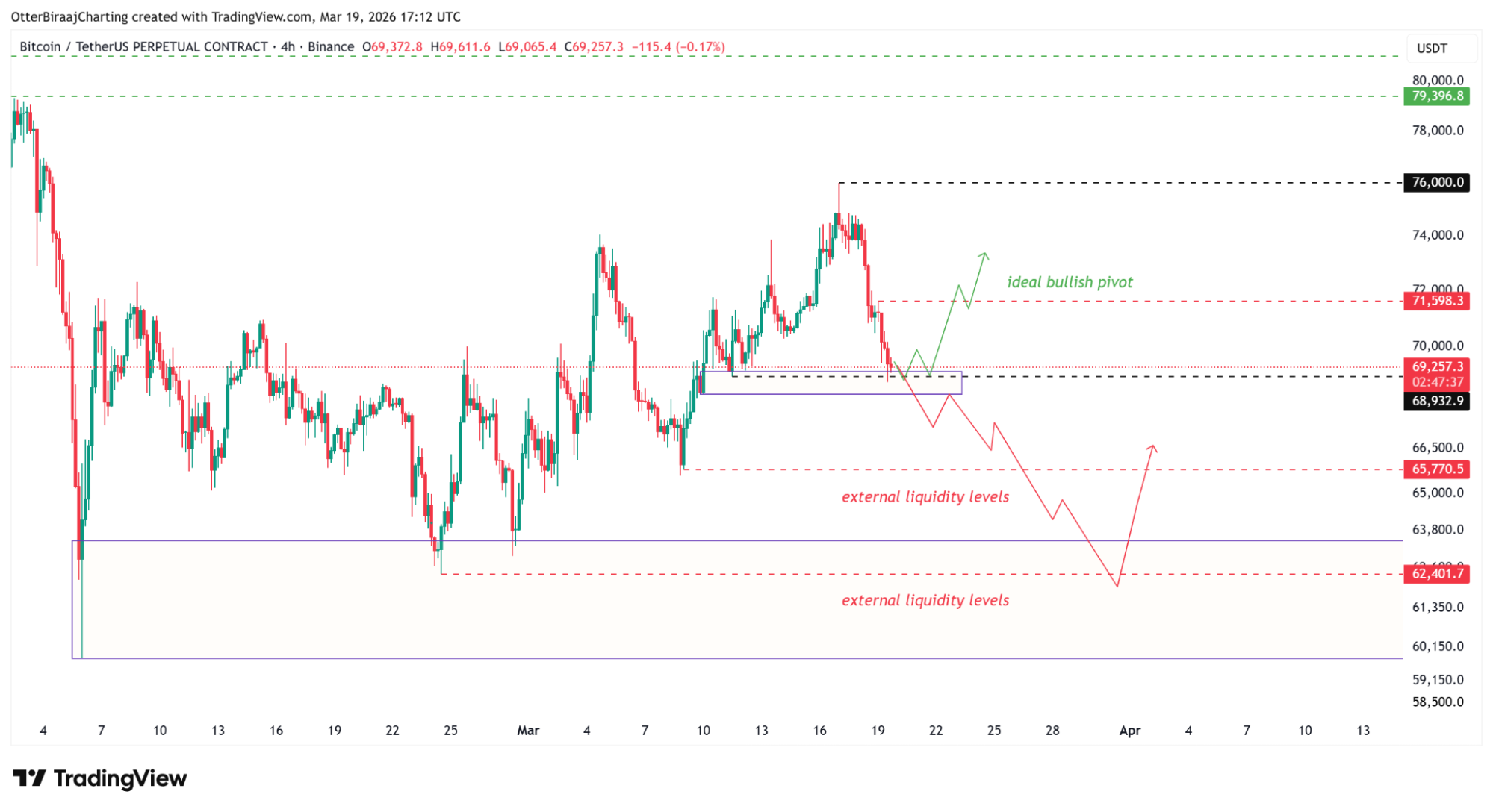 A Bitcoin árfolyama jelenleg egy olyan mintát követ, amely nagyon hasonlít a március eleji mozgáshoz. Akkor az ár először esett, kiszívta a piacról a likviditást, majd hirtelen fordult és emelkedni kezdett.