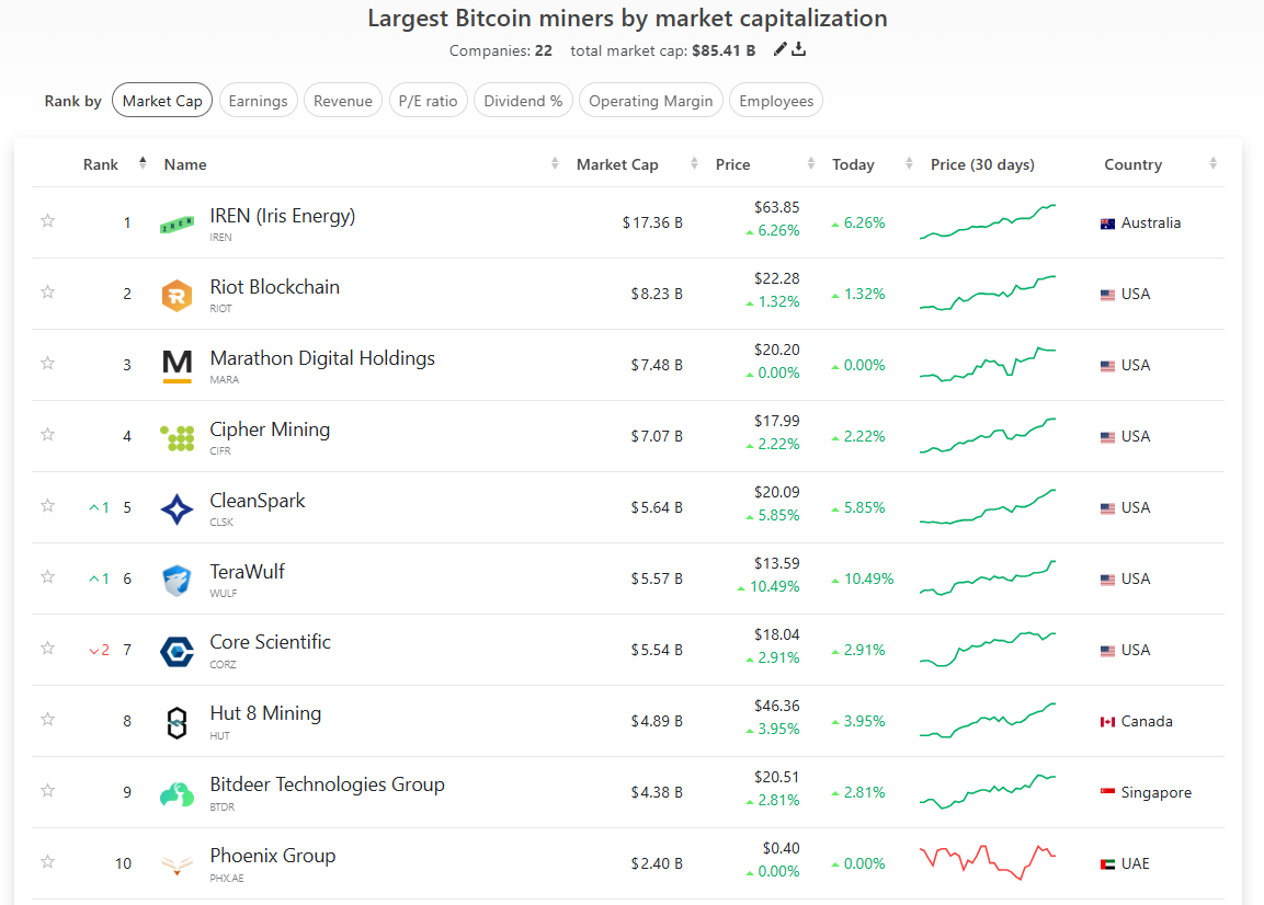 Az idei év egyik legfontosabb mozzanata volt, hogy számos bitcoinhoz köthető társaság jelent meg a tőzsdén, a már meglévők pedig messze túlteljesítették a piacot. A legnagyobb bitcoin-bányásztársaságok piaci kapitalizációja jelenleg 85 milliárd dollár körül inog, amelyet 22 vállalat tesz ki az Egyesült Államoktól kezdve Kanadán, Ausztrálián és Szingapúron át egészen Kínáig.