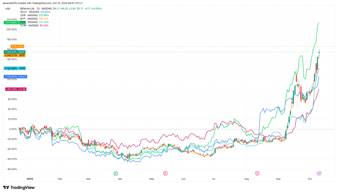 A legnagyobb vállalatnak az ausztrál IREN, vagyis az Iris Energy, minősül a maga 17 milliárd dolláros kapitalizációjával, ezzel a piac egyötödét kitéve. A Riot Blockchain, a Marathon Digital, a Cipher Mining, a CleanSpark, vagy éppen a TerraWulf pedig szintén majdnem mindegyszálig kétszámjegyű hozamot produkáltak hónapról hónapra, ugyanakkor az IREN idei 520%-os növekedését senki nem tudta felülmúlni.