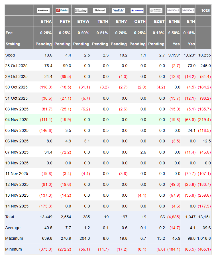 A közelmúlt adatait vizsgálva megállapítható, hogy mind az azonnali Bitcoin ETF-ek, mind az azonnali Ethereum ETF-ek jelentős kiáramlási hullámmal kell szembenézzenek: míg a BTC esetében ez a szám csak november első felében elérte a 3,5 milliárd dollárt, addig az ETH esetében is drasztikusnak mondható, egymilliárd dollárt meghaladó nettó kiáramlásról számolhatunk be.