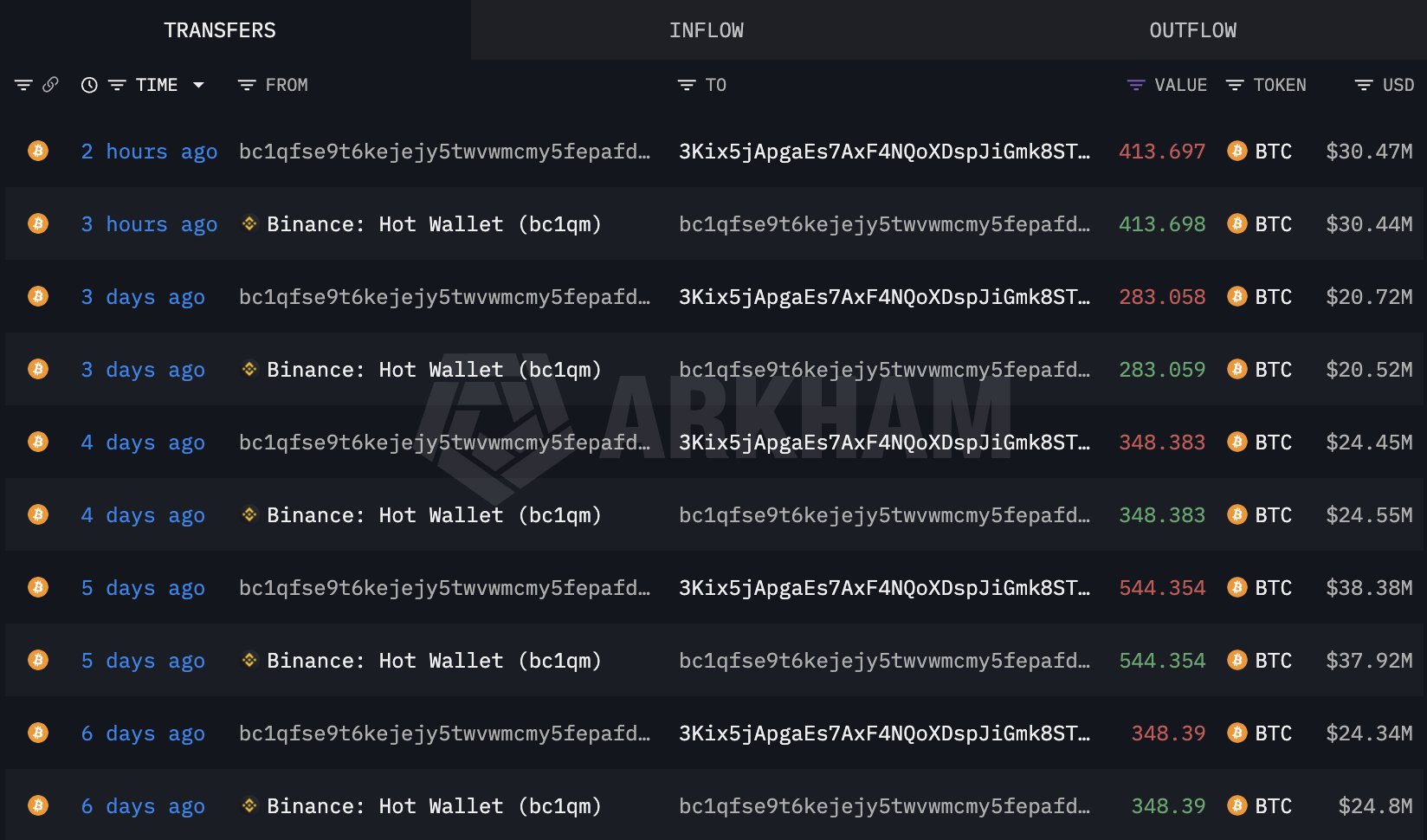 A bc1qfs tárcacímen ismert bálna jelentős mennyiségű bitcoint vont ki a Binance tőzsdéjérők, forrás: X/Lookonchain