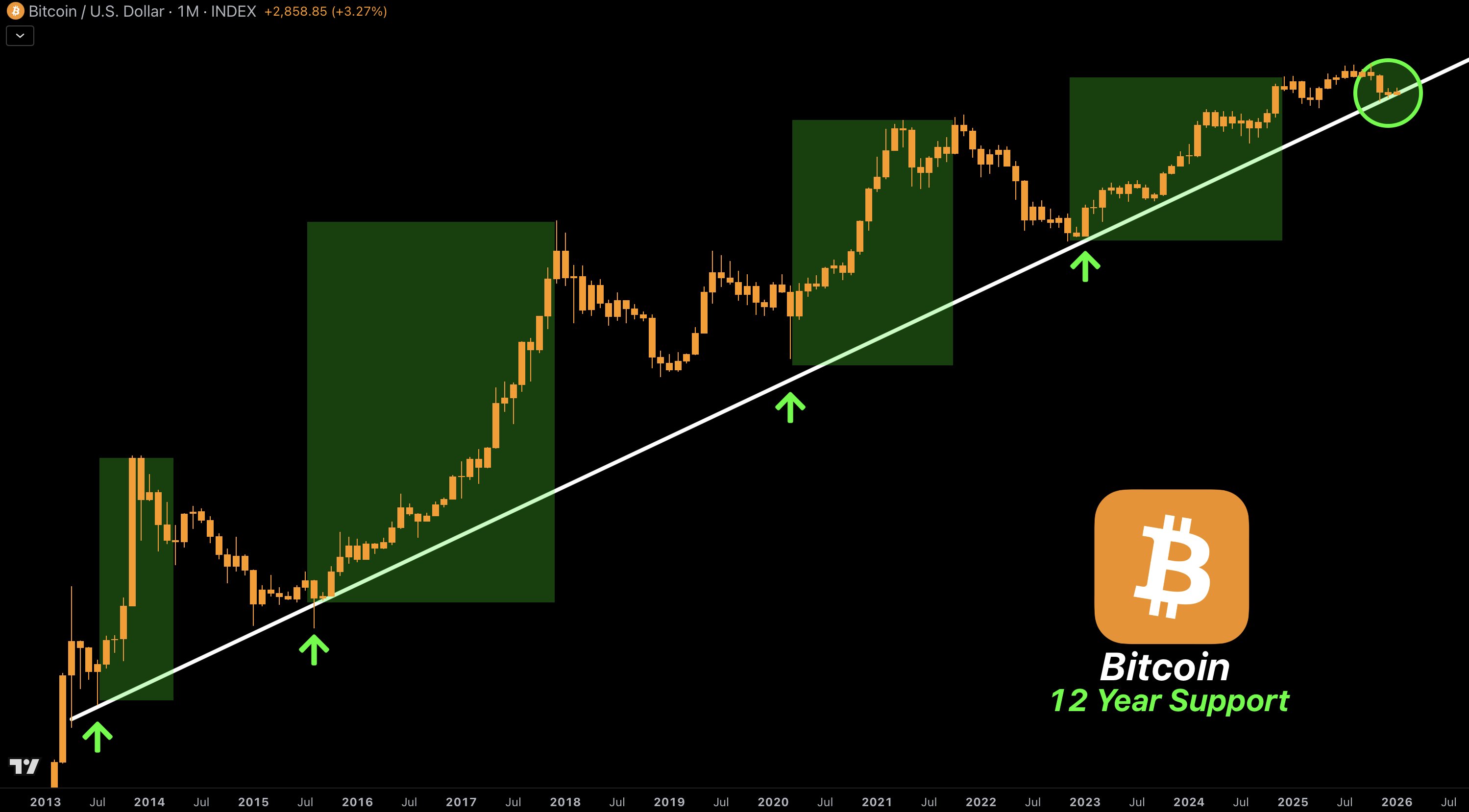 Fontos megjegyezni azonban, hogy a BTC jelenleg technikai szempontból egy 12 éves emelkedő trendvonalról pattanhat vissza, amit legutóbb 2022 végén, 2023 elején érintett. Hasonló teszteléseknél elfogyott a lefelé irányuló nyomás, és emelkedő trend következett, nem pedig oldalazás. Bár a múltbeli esetek nem szolgáltatnak garanciát a jövőbeli eseményekre, a makrogazdasági lazítás közepette okkal lehetnek optimisták a befektetők: történelmi csúcson az arany és több amerikai részvényindex is, kérdés, a bitcoin mikor követheti riválisait.
