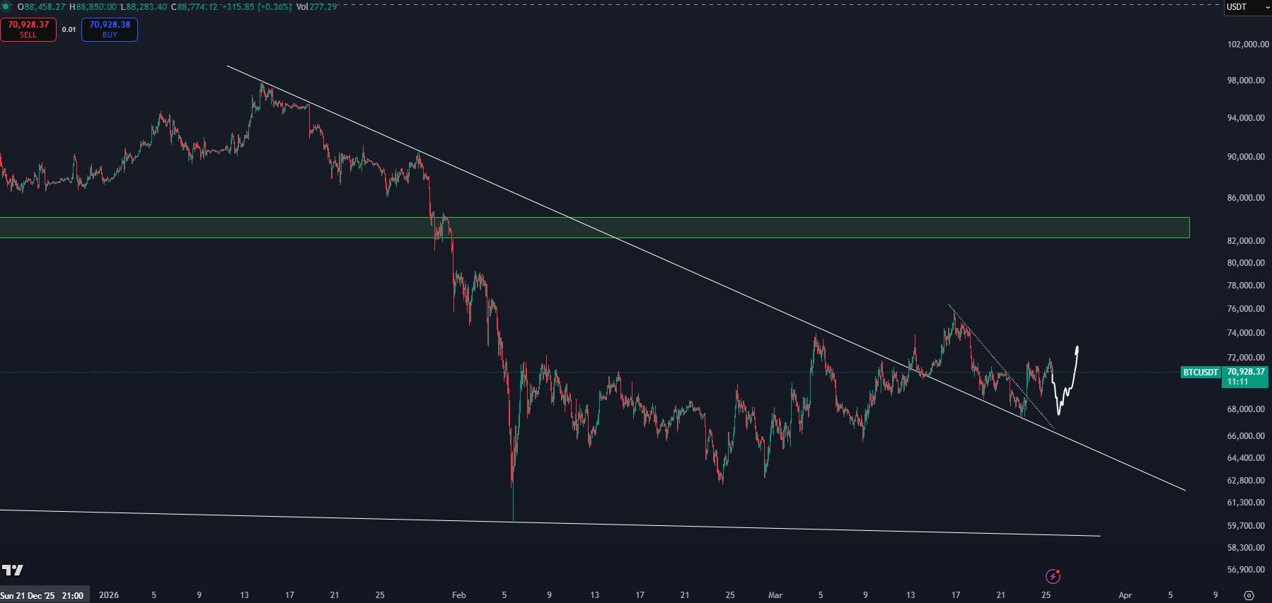 (BTC) 2025 októberétől kezdve, amit idén márciusban akár meg is törhet. Az októberi történelmi likvidáció óta ugyanis például novemberben 17,7%-ot, januárban 10%-ot, februárban pedig 15%-ot vesztett az értékéből a vezető kripotvaluta. Márciusban jelenleg 5%-os pluszban található a vezető digitális eszköz, amit egy rosszabb napon akár annulálhat is, de egy jobb napon pedig akár meg is duplázhat.