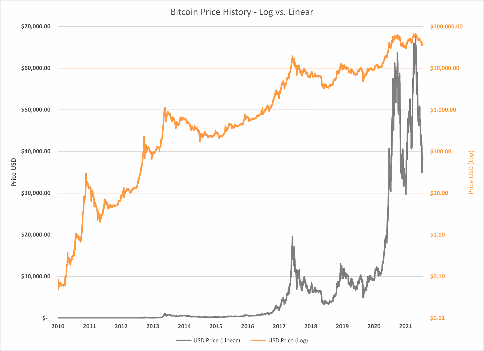 Bitcoin-árfolyam alakulása 2009-től (USD, lineáris és log skála) | Monochrome