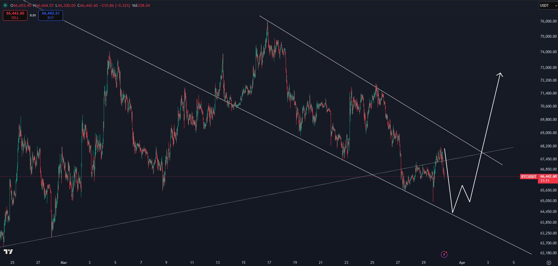 A technikai elemzők szerint egy „utolsó lejtmenet” még vár ránk az 50-55 000 dollár környéki tartományra, ahonnan megindulhat a vezető kriptovaluta felfelé, azonban azt senki nem tudja, hogy ez mikor következhet be. Egyesek szerint a medvepiaci mélypont valahol nyár végén, ősz elején érkezhet meg, míg mások nyár elejére jósolják, amit egy masszív oldalazás követhet.