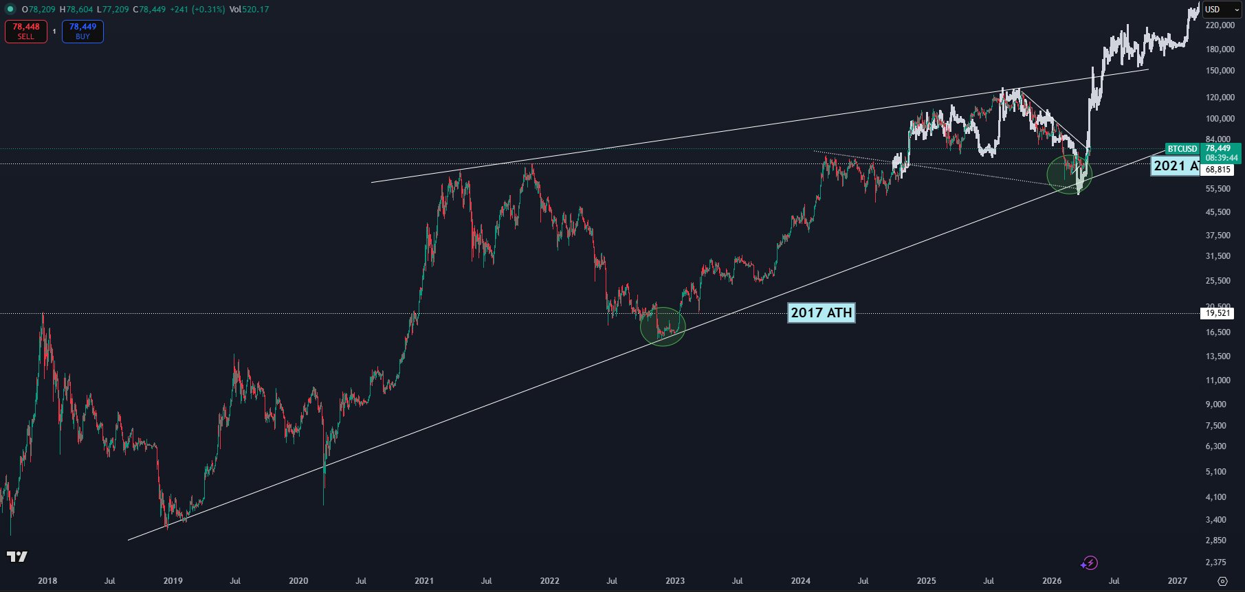 Amennyiben hinni lehet a ciklikus trendeknek, a 2026-os mélyponton már túl vagyunk, és nem fogunk ismét 60 000 dollár körüli bitcoin-árfolyamot látni, azonban a hatszámjegyű árfolyamra még várni kell. 2026 második fele egyértelműen kedvezhet a vezető digitális eszköznek, ehhez azonban a közel-keleti feszültségek enyhülése szükséges, valamint a makrogazdaság stabilizálódása. Bár az április 29-i FOMC ülésen 99,5%-os esély mutatkozik arra, hogy az amerikai jegybank nem vág kamatot, az idén hátralévő öt ülésen egy 25 bázispontos kamatvágásban reménykednek a befektetők, amely 3,25-3,50%-ra csökkentené az irányadó kamatokat.