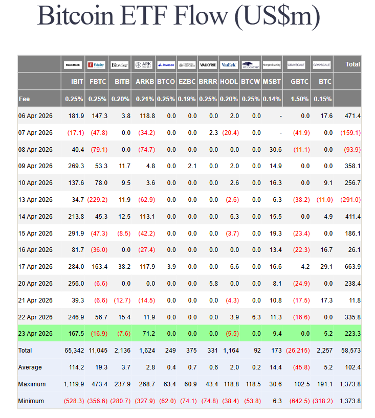 Eric Balchunas, a Bloomberg Intelligence elemzője tegnap arról beszélt, hogy április 23-mal egy olyan trend kezdődött meg az azonnali bitcoin ETF-ek életében, melyre régóta nem volt példa: az amerikai tőzsdén kereskedett kripotvaluta-alapok nyolc napja pozitív nettó beáramlási trendet produkálnak, miután összesen több mint kétmilliárd dollár áramlott be az alapokba.