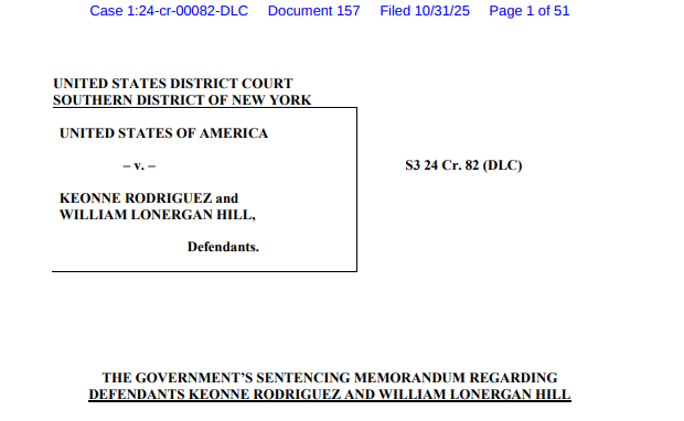 Október 31-én, pénteken nyújtották be az ügyészek azt a memorandumot, amelyben öt év börtönbüntetést kértek mindkét alapító, Keonne Rodriguez és William Lonergan Hill számára.