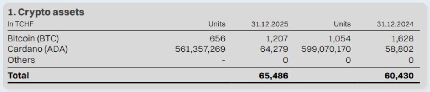 A jelentés szerint az Alapítvány által birtokolt ADA mennyisége 599 millióról 561 millióra csökkent, a tartalékon belüli aránya pedig 77%-ról 52%-ra esett vissza. Ennek oka az, hogy a vállalat bár csökkentette bitcoin-készleteit 1054-ről 656-ra, felülteljesítése miatt mégis nagyobb arányban veszi ki a részét a tartalékokból.