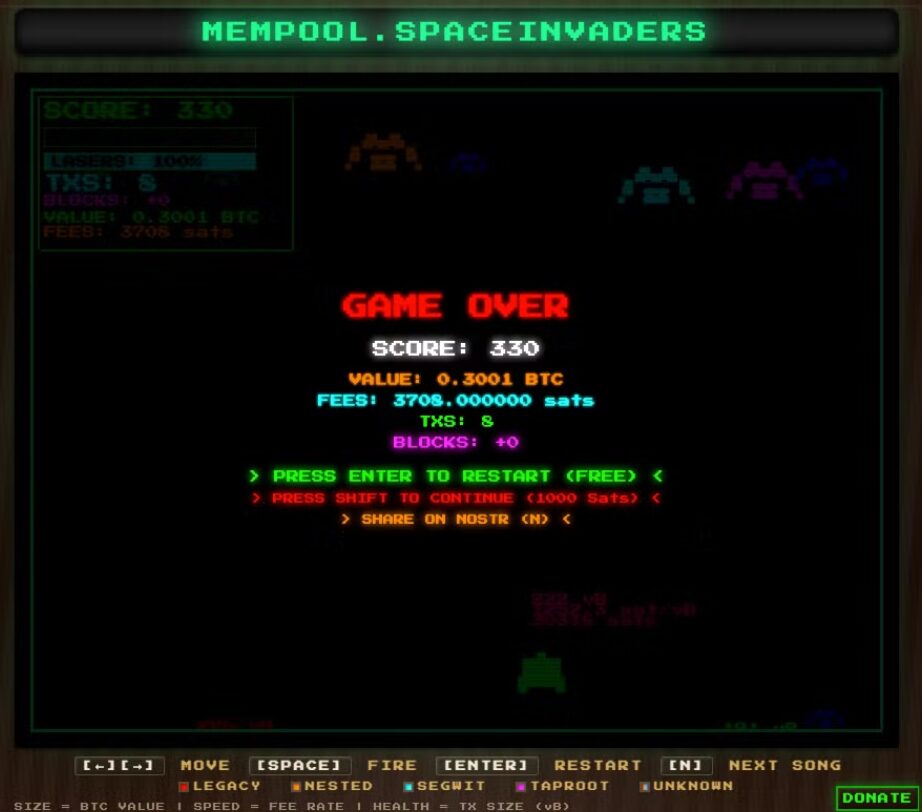 A Mempool Space Invaders egy kifejezetten szórakoztató játék