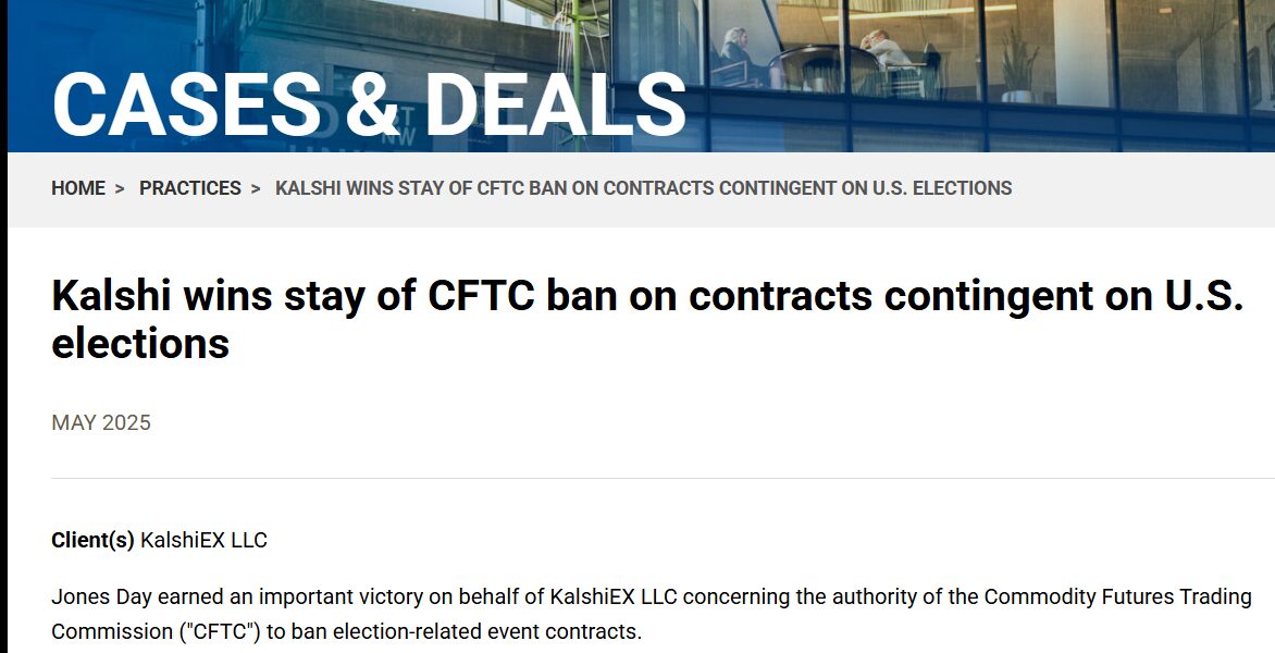 A Kalshi ezután beperelte a CFTC-t, a szerinte jogellenes döntés miatt. És ebben a perben végül a washingtoni bíróság a Kalshi oldalára állt, a CFTC pedig később visszavonta a fellebbezését. Leginkább azért, mert a Trump‑korszakbeli CFTC már nem akarta folytatni a Biden‑korszakban indított pert. Most, hogy Roth már nem a Kalshit képviselő Jones Day ügyvéde, hanem a szövetségi kormánynak dolgozik, a Kalshit érintő peres ügyekben a neve a másik oldalon szerepel. Roth nem az egyetlen korábbi Kalshi‑ügyvéd, aki kormányzati pozíciót kapott.