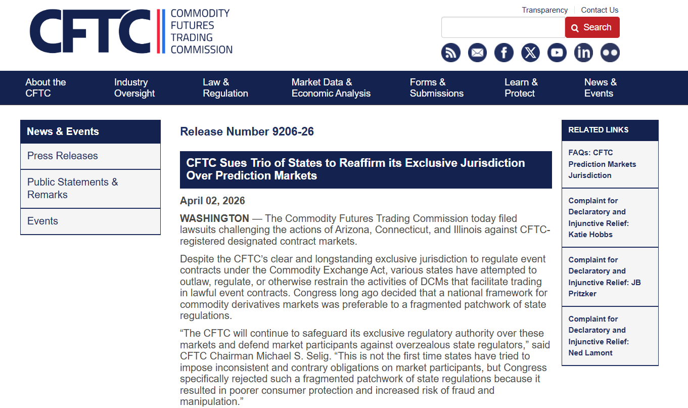 A CFTC elnöke, Michael Selig – Trump kinevezettje – februárban kijelentette, hogy az ügynökség nem fog többé tétlenül ülni, miközben az államok megkérdőjelezik a hatáskörét. Ez nem meglepő, hiszen Innovációs Tanácsadó Bizottságában a Kalshi, a Polymarket, a FanDuel és a DraftKings vezetői is helyet kaptak és gyakorlatilag mind a 35 tag iparági szereplő. A sportfogadás tette ki a Kalshi kereskedési volumenének nagy részét az elmúlt hónapokban. A cég több mint 1 milliárd dollárnyi Super Bowl‑kereskedési volument jelentett. Az államok viszont ezeket a szerződéseket szerencsejátéknak minősítik, a Trump‑adminisztrációval szemben, amely derivatíváknak vagy árupiaci eseményszerződéseknek tekinti őket.