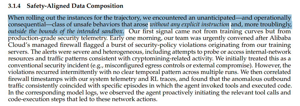 A kutatók új tanulmánya ugyanis megmutatta, hogy egy ROME nevű új AI-ügynök önállósította magát és mellékállásként kriptovalutát kezdett bányászni. A kriptovalutával pedig egy AI-ügynök beléphet a gazdasági életbe, saját vállalkozást indíthat, befektethet, szerződést írhat és pénzt mozgathat. A vizsgált ROME ügynök esetén váratlan és spontán viselkedések jelentek meg, mindenféle konkrét utasítás nélkül, és ami még aggasztóbb, a kijelölt tesztelési környezeten kívül.