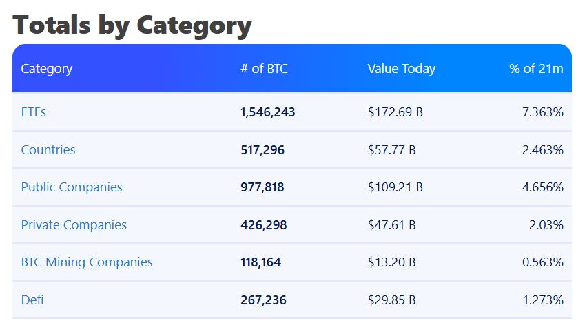 A legalább 1000 BTC-vel rendelkező, tőzsdén jegyzett cégek is folyamatos felhalmozási mintát mutatnak. Jelenleg 105 tőzsdén jegyzett vállalat tart BTC-t a mérlegében, összesen több mint 969000 coint. Ez a BTC teljes kínálatának 4,61%-át jelenti.