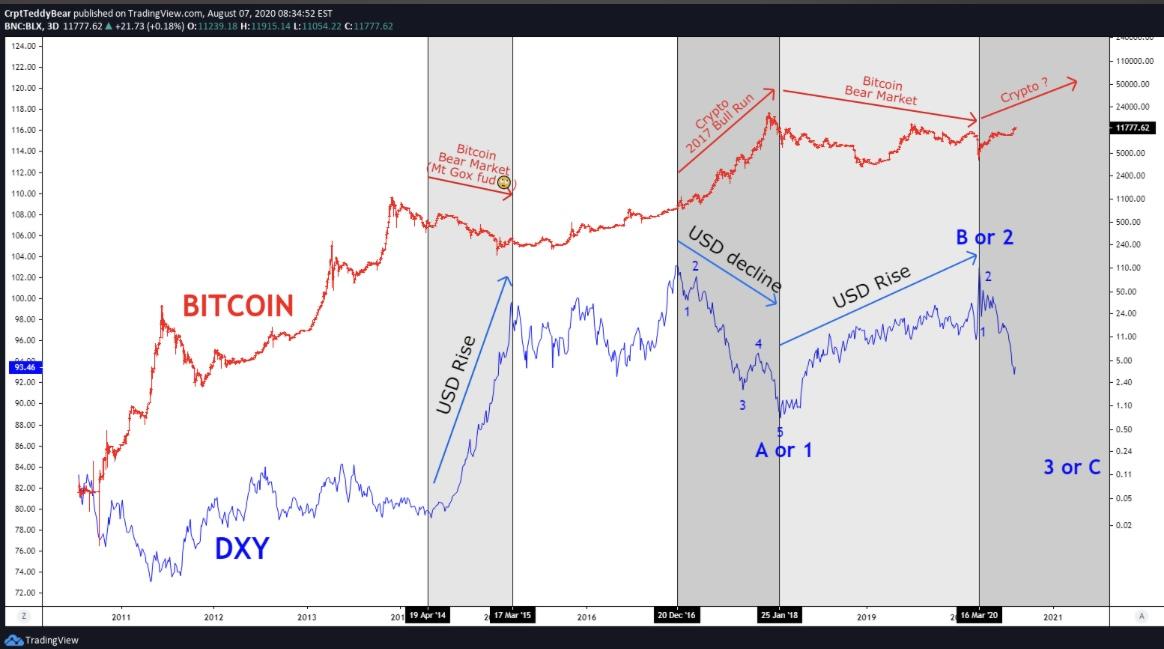 A kriptovilágban érdemes figyelni az amerikai dollár mozgását, mert meglepő módon a Bitcoin árfolyama