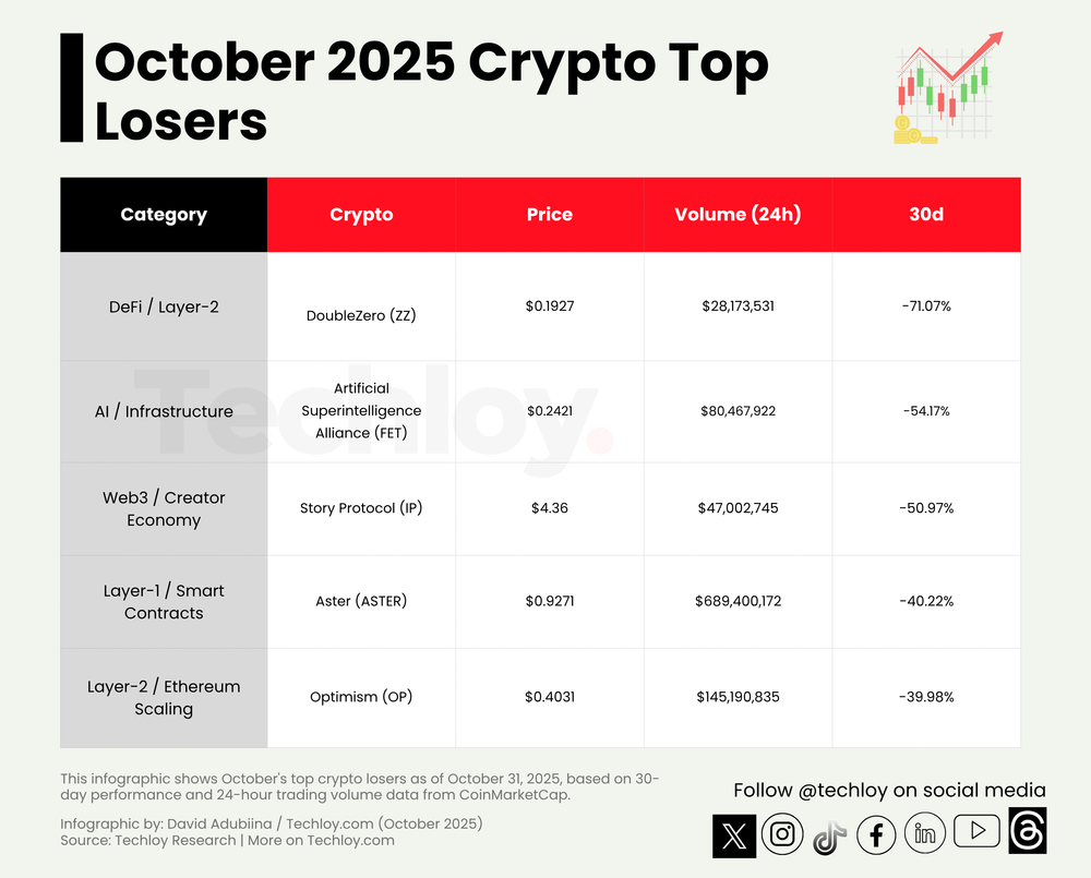 Más oldalról nézve azonban jelentős esések is voltak. A DoubleZero (ZZ) több mint 71%-ot esett, az Artificial Superintelligence Alliance (FET) 54%-os csökkenést produkált, ami azt jelzi, hogy az AI témájú tokenek lendülete megtörni látszik a Bittensor és Virtuals Protocol kivételével.