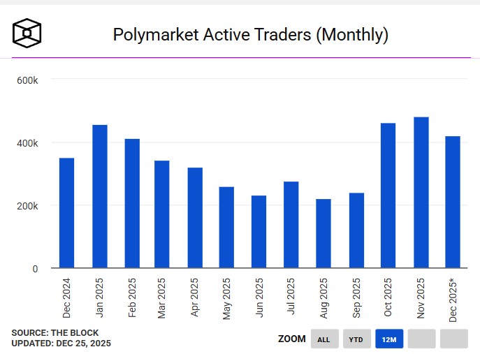 Aktív kereskedők a Polymarketen – Forrás: The Block