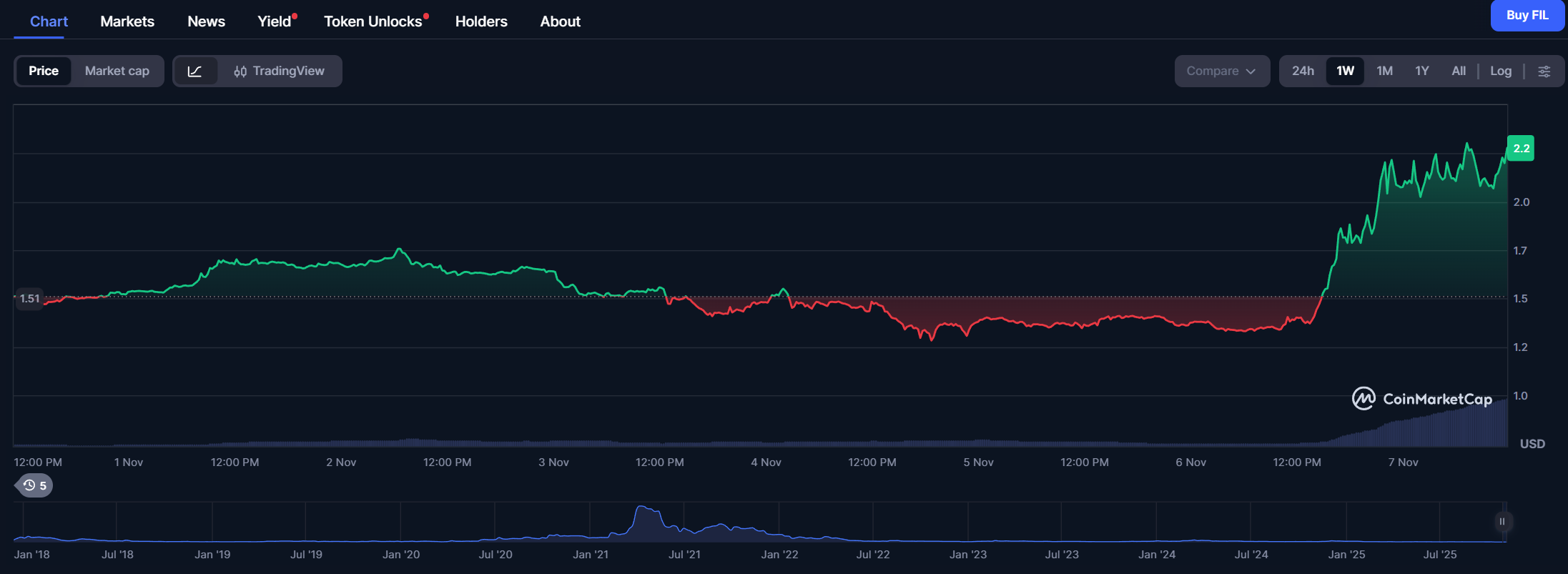 A döntő pillanat akkor érkezett el, amikor a napi kereskedési volumen 72,8 millió FIL tokent ért el. Ez 247%-kal haladta meg a 24 órás egyszerű mozgóátlagot, amivel a FIL-nek végre sikerült áttörnie az 1,93 dolláros kritikus ellenállást. A több mint 70%-os emelkedés összesen 1 dolláros árfolyamsávban zajlott le, 1,33 dolláról ugrott 2,33-ra, a növekvő érdeklődés és befektetők hatására pedig – egyelőre – sikerült 2 dollár feletti tartományban konszolidálódnia. Az áttörés tehát bizalomerősítő fordulópont volt, ami új lendületet adott a projektnek.