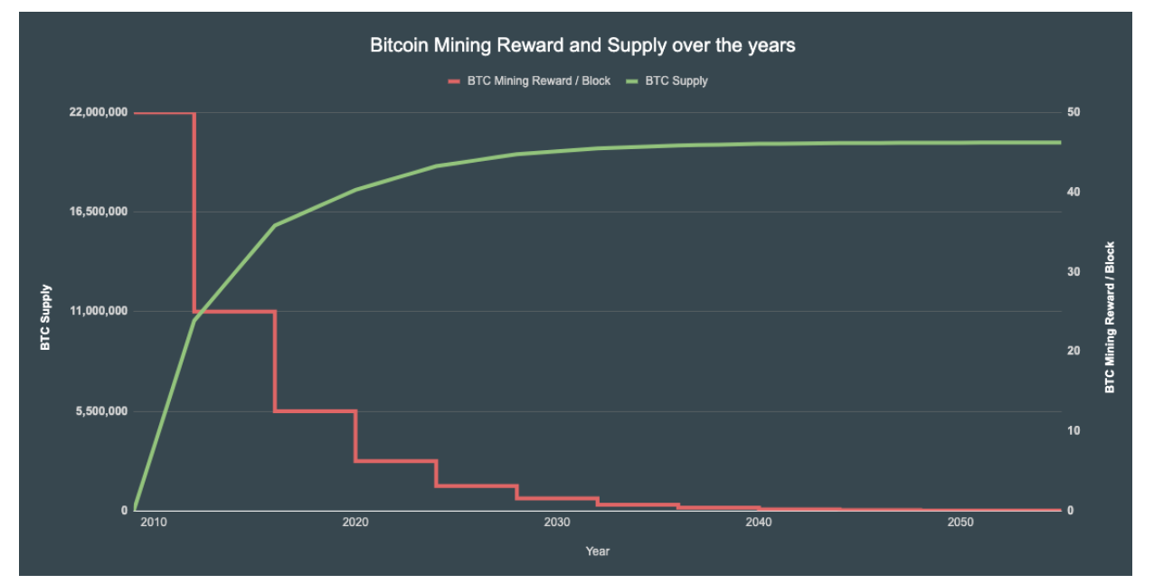 A jelenlegi ütemben átlagosan naponta körülbelül 450 új Bitcoint bányásznak. Ez az ütem nagyjából négyévente a felére csökken a Bitcoin felezése miatt. Mivel már csak 1 millió Bitcoin kínálat van hátra, az utolsó Bitcoint 2140 körül bányásszák ki.