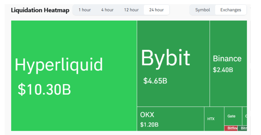 A kriptopiac hirtelen és váratlan összeomlása több mint 19 milliárd dollár értékű tőkeáttételes pozíciót tüntett el 24 óra alatt. A Coinglass szerint több mint 1,6 millió kereskedő pozíciója törlődött. A Hyperliquid tőzsde önmagában a teljes felszámolás valamivel több mint felét – körülbelül 10 milliárd dollárt – tett ki. De a Bybit, a Binance és az OKX is több milliárd dollárt égetett el.