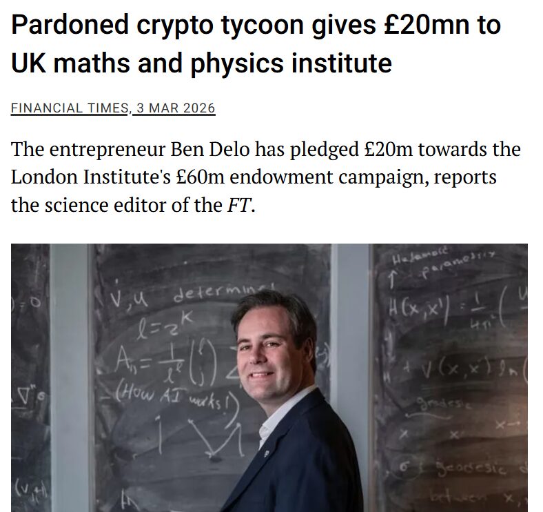 A már lassan 10 éves BitMEX kriptotőzsde társalapítója, Ben Delo (a tanácsokkal bőkezűen bánó Arthur Hayes és Samuel Reed mellett) 20 millió brit fontot (nagyjából 10 milliárd forintot) ígért adományként a London Institute for Mathematical Sciences (LIMS) számára, ami az egyik legnagyobb magánadomány, amelyet az Egyesült Királyságban valaha kutatóintézet kapott Oxfordon és Cambridge-en kívül. Nem az egy az egyben adja oda az összeget, a felét most azonnali támogatásként, a másik öt milliárd forintot viszont csak akkor, ha a Mayfairben működő intézet további adománygyűjtéssel összegyűjt még ennyit.