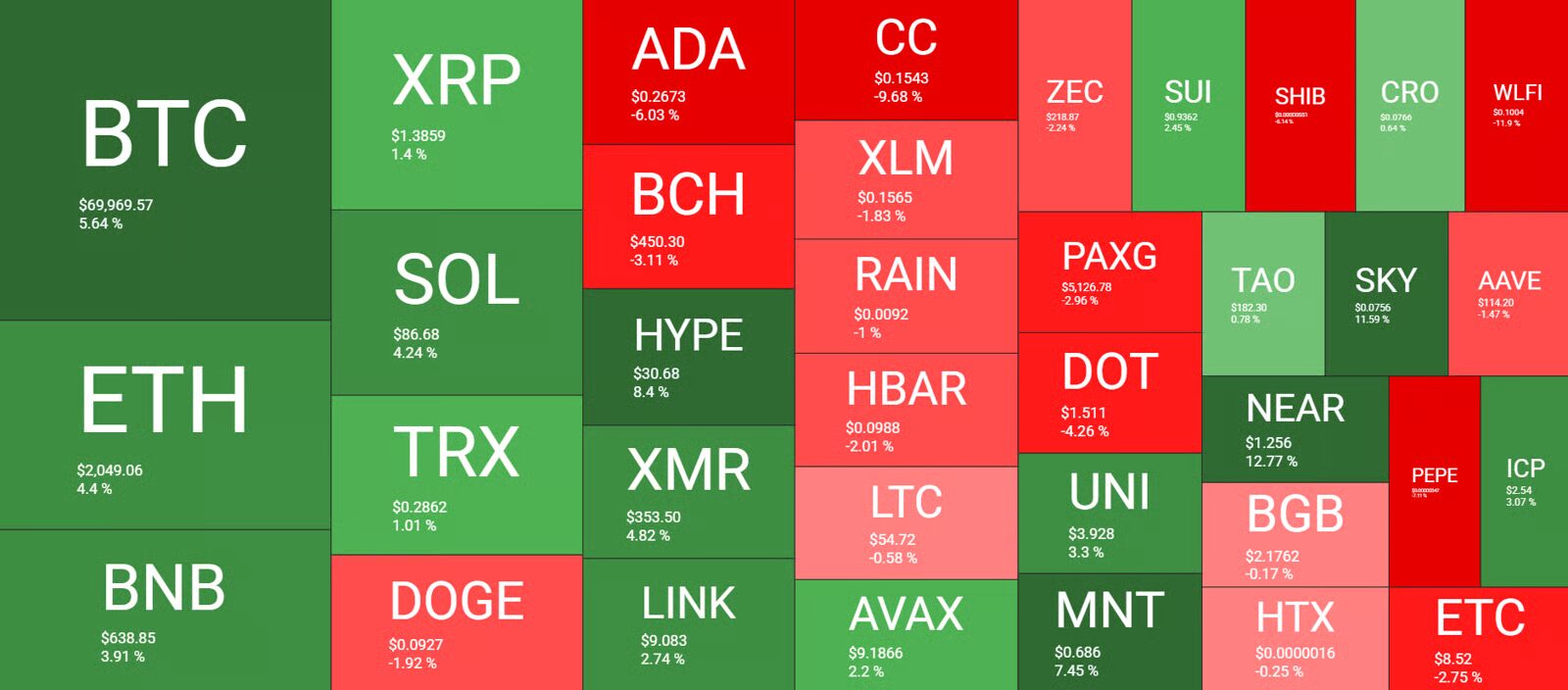 Az altcoinok teljesítménye vegyes képet mutat. Néhány nagyobb projekt – például a HYPE, a NEAR, a RIVER és az OKB – jobban teljesített a piaci átlagnál. Mások viszont, köztük az ADA, a BCH, a SHIB és a DOT, jelentősebb esést mutattak.