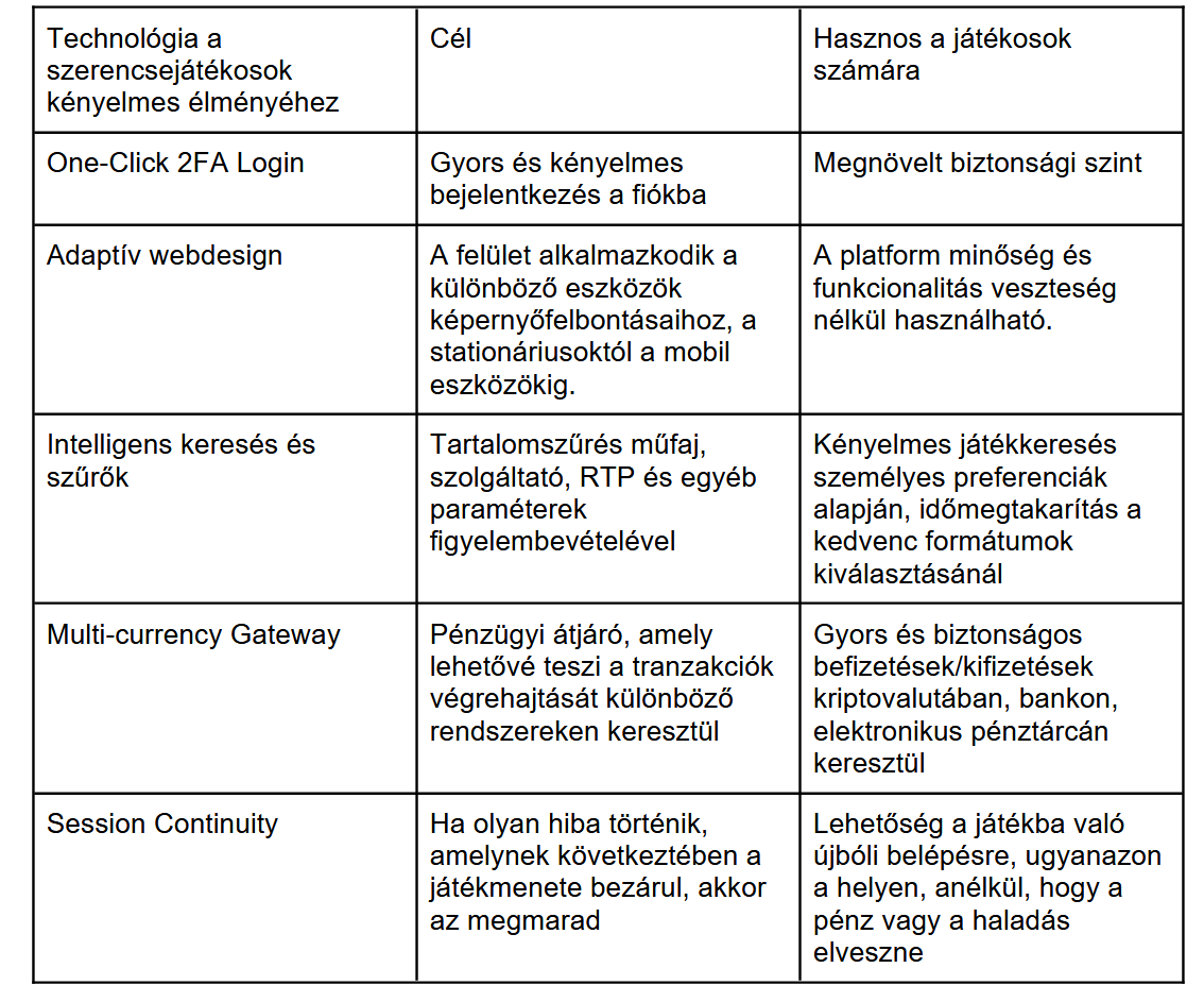 A szerencsejáték Európában nagyon népszerű módja a kényelmes és izgalmas időtöltésnek. Ezért a legtöbb magyar online kaszinó modernizálódik, figyelembe véve a közönség preferenciáit. A játékokkal foglalkozó webhelyek teljes értékű ökoszisztémákká alakulnak. Ehhez különböző modern technológiákat használnak, mint például a mesterséges intelligencia (AI), az azonnali fizetések, a biztonsági rendszerek és az új játékformátumok.