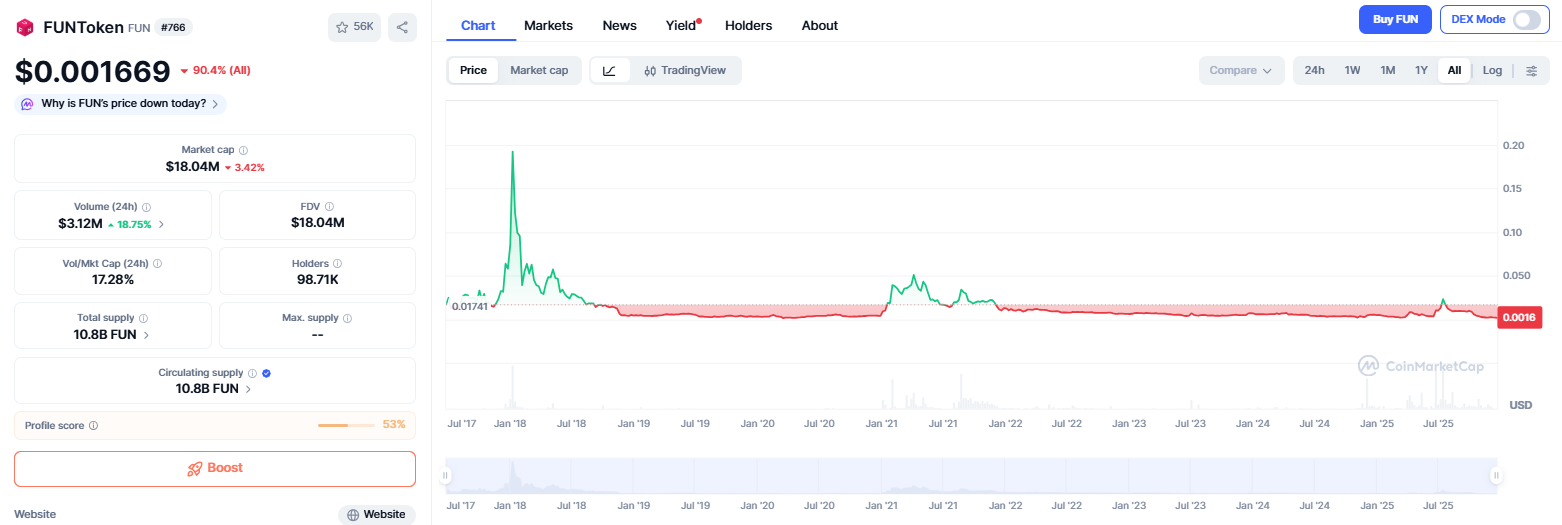 A helyzetet súlyosbította a FUN token agresszív erőltetése: a prémium státuszért és magasabb kamatért hosszú időre lekötött altcoint a beszámolók szerint sokan már megvétel után jelentősen leértékelve látták, miközben a token árfolyama a nyílt piacon is 90% feletti esést szenvedett el. Mondanunk sem kell, az ilyen jellegű kezdeményezések mindig ugyanoda vezetnek.