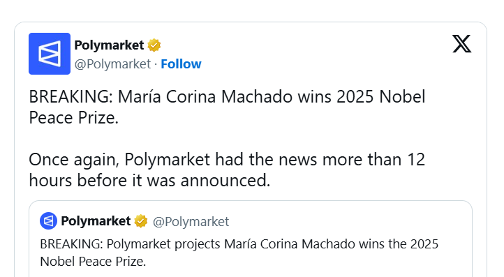 Az elmúlt hónapokban számos gyanús időzítésű kereskedést észleltek a Polymarket platformján. Különösen figyelemre méltó, hogy a hónap elején a webhely felhasználói úgy tűnt, hogy néhány órával a döntés nyilvános bejelentése előtt helyesen tippelték meg a Nobel-békedíj nyertesét, ami a norvég hatóságok belső vizsgálatát vonta maga után.