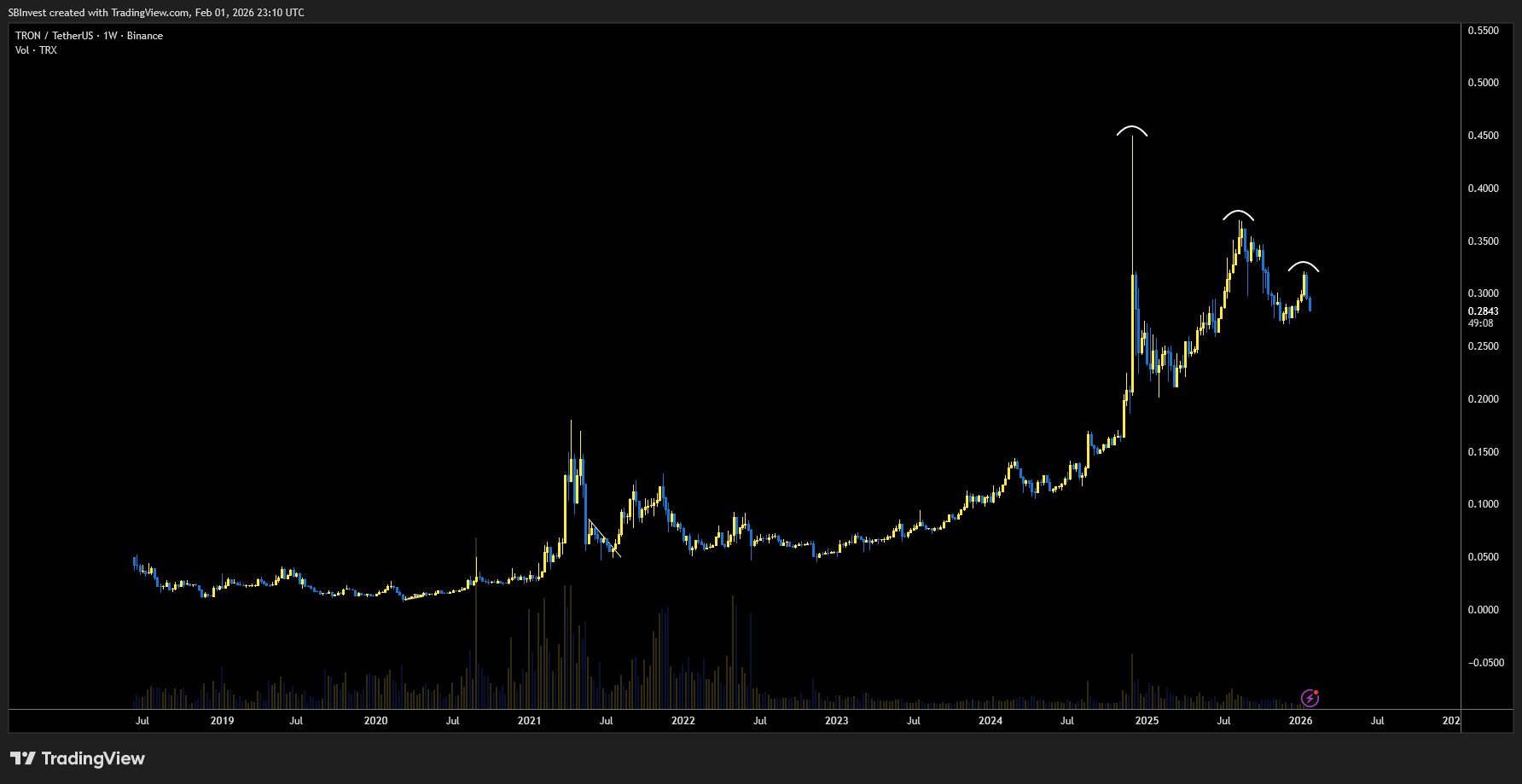 A Tron natív tokenje, a TRX cikkünk írásakor 0,28 dolláron forog és a 8. legnagyobb kriptovalutának számít a maga 26 milliárd dolláros piaci kapitalizációjával. Bár a tágabb értelemben vett kriptovaluta-piacon jelentős likvidációk zajlanak, a TRX árfolyama idén eddig 0,5%-ot vesztett csak az értékéből, az elmúlt héten pedig idézőjelben – a többi digitális eszközhöz képest – csak 4%-ot.