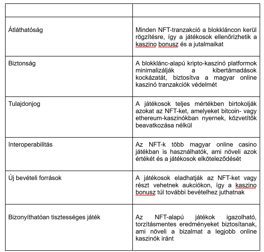 Az NFT-k forradalmasítják a magyar online kaszinók világát azáltal, hogy bevezetik a tokenizált játékot és a digitális eszköztulajdont. A legfontosabb újítások a következők.