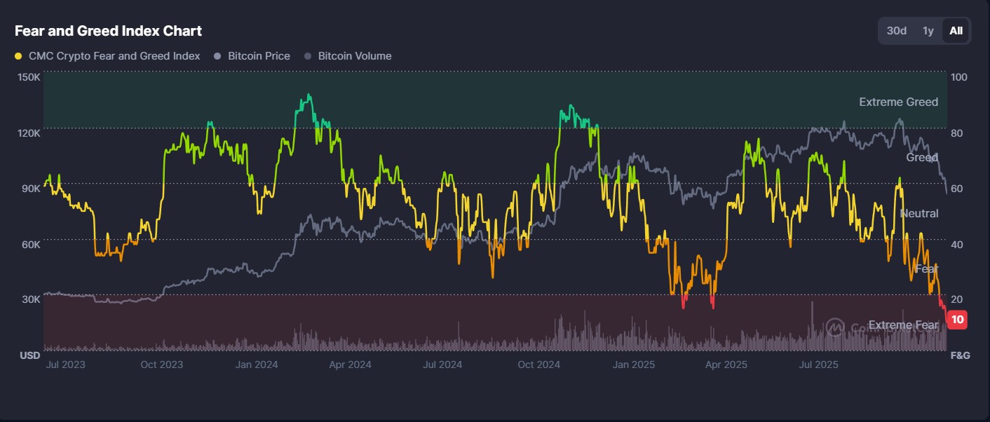 A bejelentés arra az időszakra esik, amikor a bitcoin az idei ciklus egyik legnagyobb visszaesését élte át. Az árfolyam több mint 33 százalékot esett az októberben elért, 126 000 dollár feletti csúcsról, és rövid időre 81 000 dollár közelébe süllyedt. A befektetői hangulatot mérő Crypto Fear and Greed Index 10-es értékre zuhant, ami többéves mélypontot és rendkívül pesszimista piaci érzelmeket jelez.