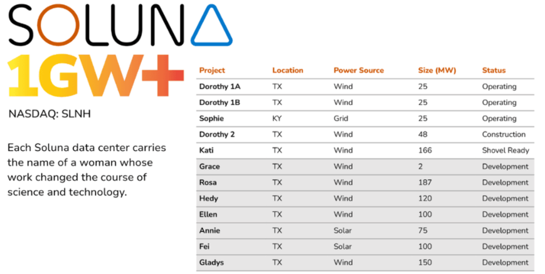 A mostani megállapodás szerinti gépek telepítése a szélenergiával működő Project Dorothy létesítményben megerősíti a két vállalat megújuló energiára való összpontosítását. Ami még fontos a Project Dorothy telephelyen, hogy a helyszínen termeli a villamos energiát és így nem kell a fő villamos hálózaton való továbbítással foglalkozni. Ettől függetlenül a szélenergia-alapú működést figyelembe véve hasznos, hogy még mindig csatlakozik a hálózatra, ami segít biztosítani a működési stabilitást és az állandó rendelkezésre állást. A Soluna stratégiája itt nem áll meg, a közleményük szerint jelenleg több mint 2,8 GW teljesítményű, megújuló energiával működő számítástechnikai projekteken dolgoznak.