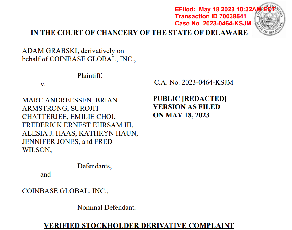 A mostani ügyben egy Coinbase-részvényes (bizonyos Adam Grabski) nyújtotta be a keresetet 2023-ban, és azt állította, hogy a vállalat vezetői, így a szigorúan védett Brian Armstrong vezérigazgató és Marc Andreessen igazgatósági tag bizalmas információkat használtak fel arra, hogy elkerüljenek több mint 1 milliárd dollárnyi veszteséget azzal, hogy részvényeket adtak el a cég 2021-es tőzsdei bevezetése idején.